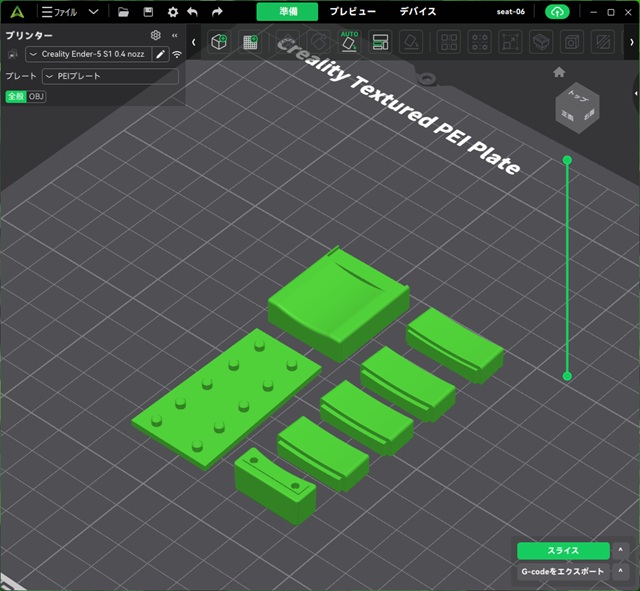 シート部分のパーツをスライサーソフトにインポートして造形準備