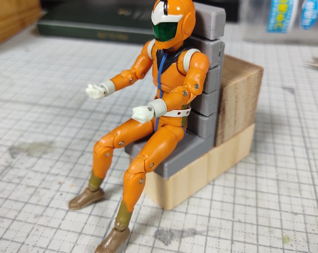 このままだとフィギュアが載せられないので、端材を組み合わせた内装パーツの土台で仮組みしました。