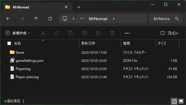 [Saves]フォルダーを別フォルダーに移動(または削除)するとゲームのセーブデータがクリアされます。