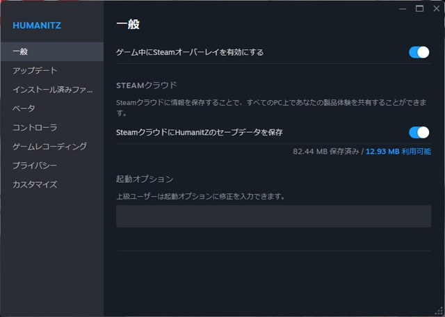 Steamの早期アクセス版などのゲームには、セーブデータを[Steamクラウドにセーブデータを保存]設定がありません。