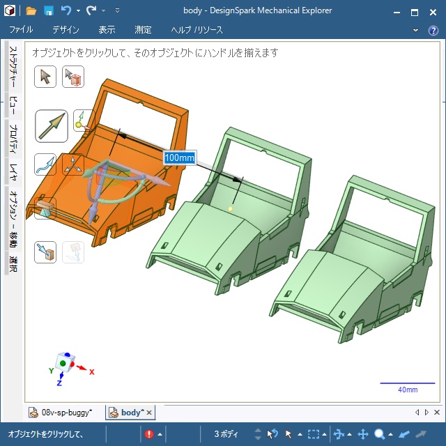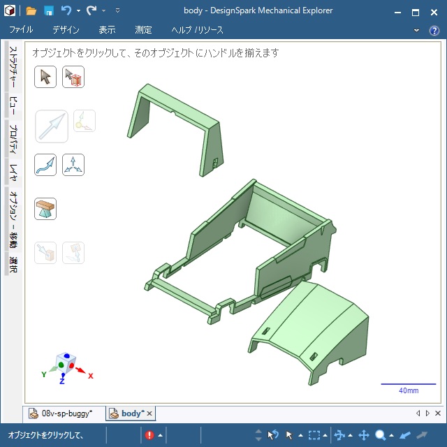 [メガハウス]さんのページを参考にしながら[DesignSpark Mechanical]でデザインしたデータのサイズ感を確認します。