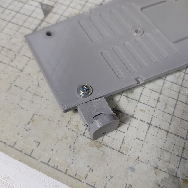 ボディー下部のパーツにタイヤ受けのパーツを固定。こちらも負荷を考慮して金属ネジを使っています。