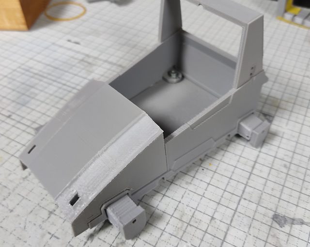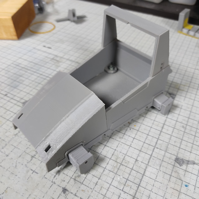 先に試作造形していたボディーパーツを載せると、こんな感じになりました。