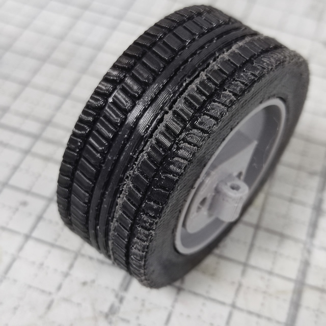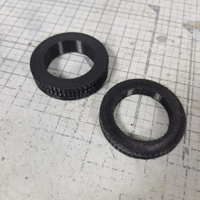タイヤを造形する際、TPUなど軟質素材が思い浮かびます。