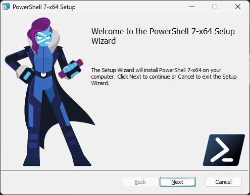 メッセージに表示されたURLからインストーラーをダウンロードしても更新できますが、[PowerShell]の画面からコマンドで更新が可能です。