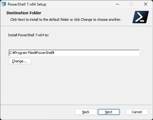 2.[Destination Folder]画面でインストール場所を選択して[Next]をクリックします。