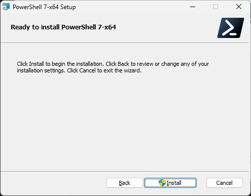4.[Ready to install PowerShell 7]画面で[Install]をクリックします。