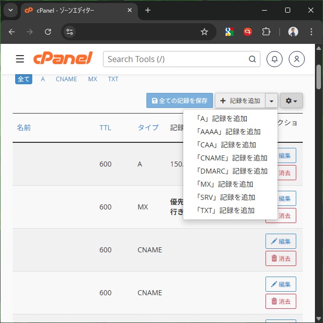 mixhostなどで採用されている[cPanel]を使ったサーバー管理でDNSに新しいレコードを追加する手順を備忘録的に投稿します。