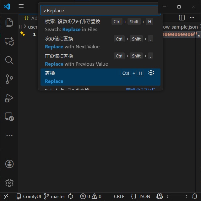 4. 再度コマンドパレットを開いて “Replace” を検索して選択します。