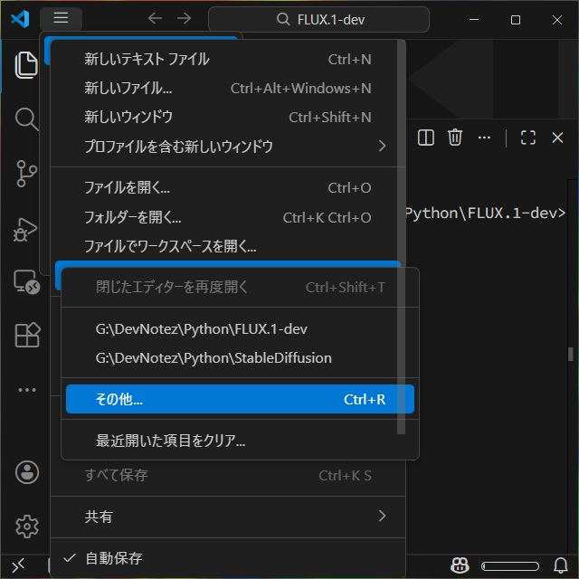 1.[ファイル|最近開いた項目|その他]メニューを選択します。