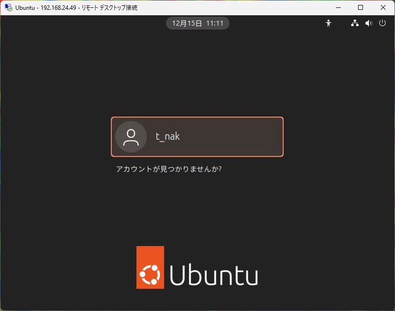 Windows11の[Ubuntu 24]に[リモートデスクトップ接続]したい人の参考になれば幸いです。