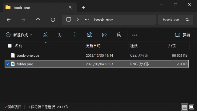 ライブラリに[cbz]形式など圧縮形式で保存する際にはサムネイルが正しく表示されない可能性があるので注意が必要です。