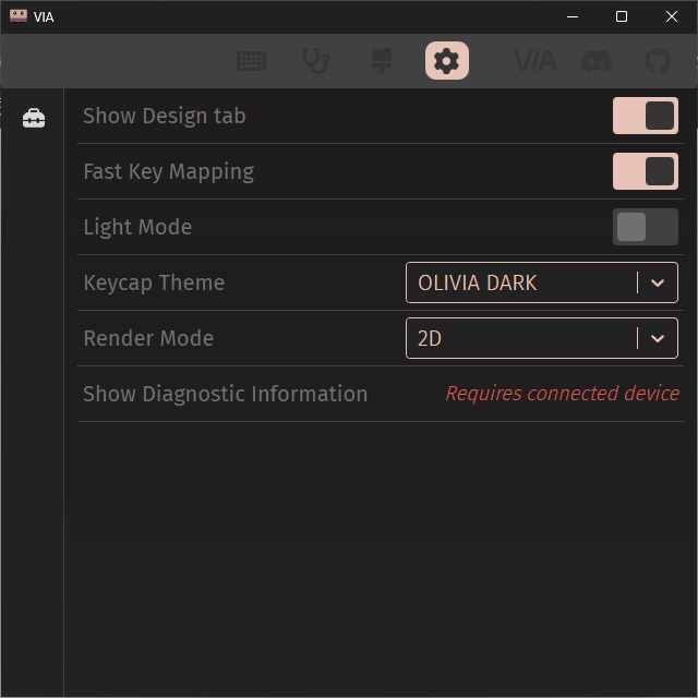 1. 表示された[VIA]画面の[SETTINGS]メニュー(上部の[歯車]アイコン)をクリックします。