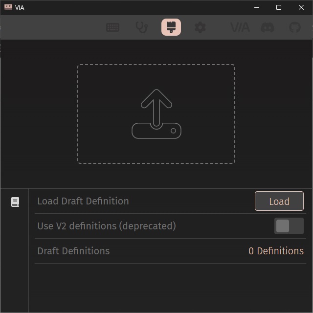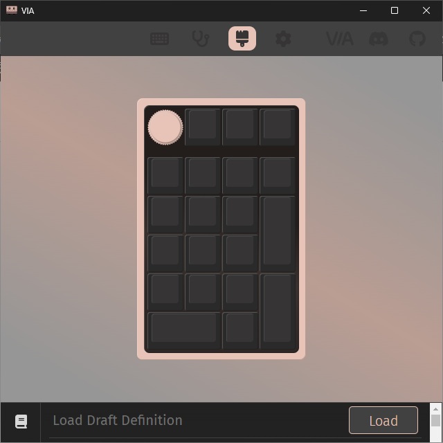 YouTubeやAmazonのレビュー欄には “デバイスを認識が認識されない” みたいなネガティブな情報もありますが、この記事を書いている時点で入手できた「EPOMAKER EK21 VIA ガスケット テンキー ゲーミングキーボード ワイヤレスメカニカルテンキー」はマニュアル通りのURLからVIAとJSONファイルをダウンロードして認識してくれました。