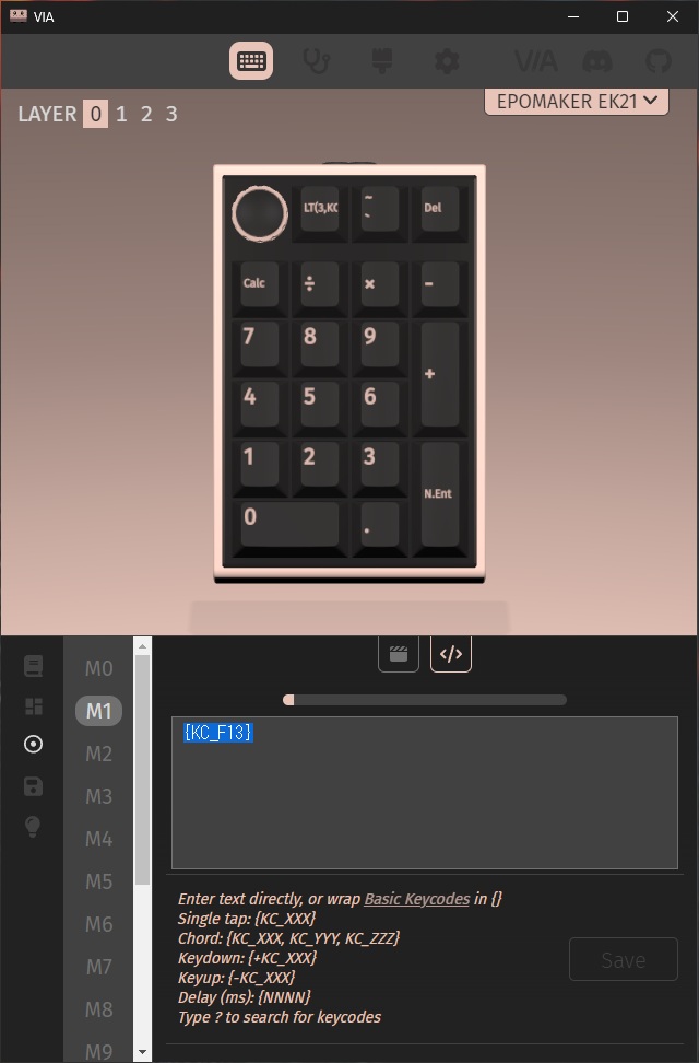 VIAで[F13]などキーボードに無いキーをマクロに設定したい人の参考になれば幸いです。