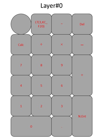 設定すると[Fn]キーを押しながら[0][1][2][3]を押すと、それぞれのレイヤーに移動し[Fn]キーの単体押しで[F20]~[F23]のキーが送信できます。
