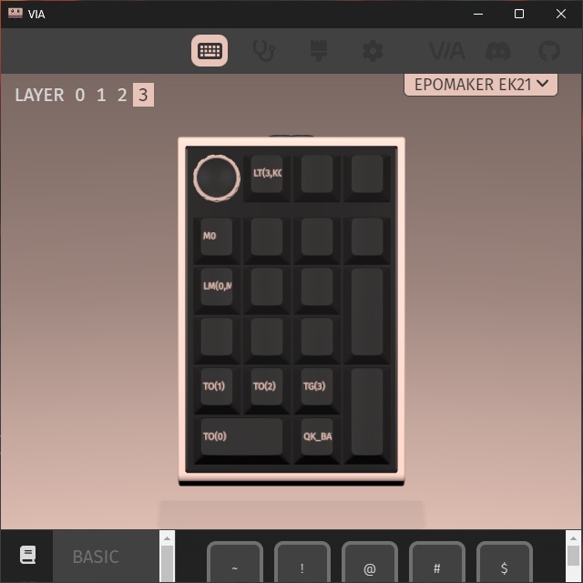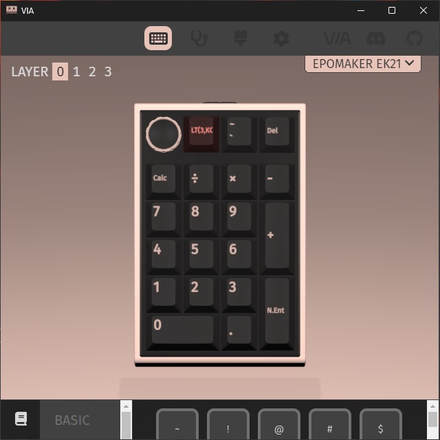 今回設定した「EPOMAKER EK21 VIA ガスケット テンキー ゲーミングキーボード ワイヤレスメカニカルテンキー」にはレイヤーが4つ設定可能なので、こんな感じになりました。