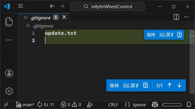 そのため、意図的にファイルを除外するにはファイルの作成直後に[.gitignore]ファイルにファイル名を追加する必要があります。([.gitignore]ファイルが無い場合には、新しく作成します)