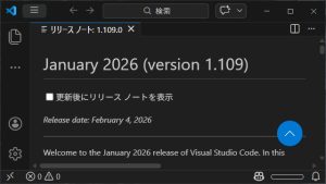 2026年1月にリリースされた「Visual Studio Code」の新しいバージョン1.109に追加された機能で気になった部分のレビューを投稿してみます。 2025年9月にリリースされたバージョン1.108に関する別 … 続きを読む VisualStudioCode 1.109 気になった機能レビュー