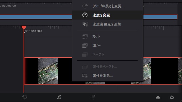 2. 追加したタイムラインの動画を右クリックして表示されたポップアップメニューで[速度を変更]を選択します。