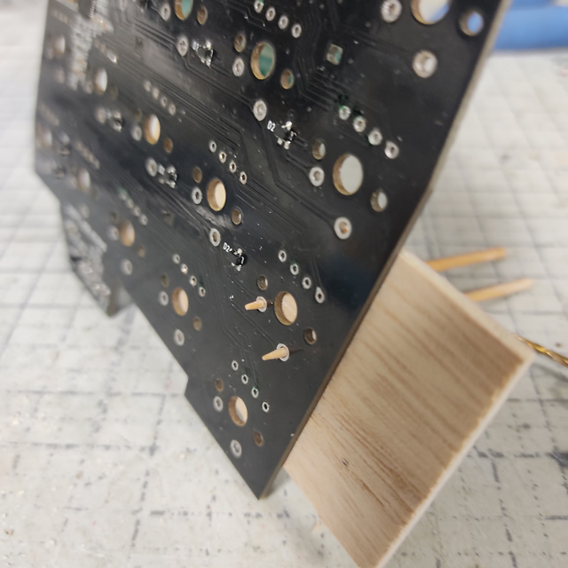 こんな感じで、基板から飛び出した爪楊枝の先端部分でソケットを仮固定できます。