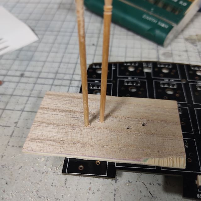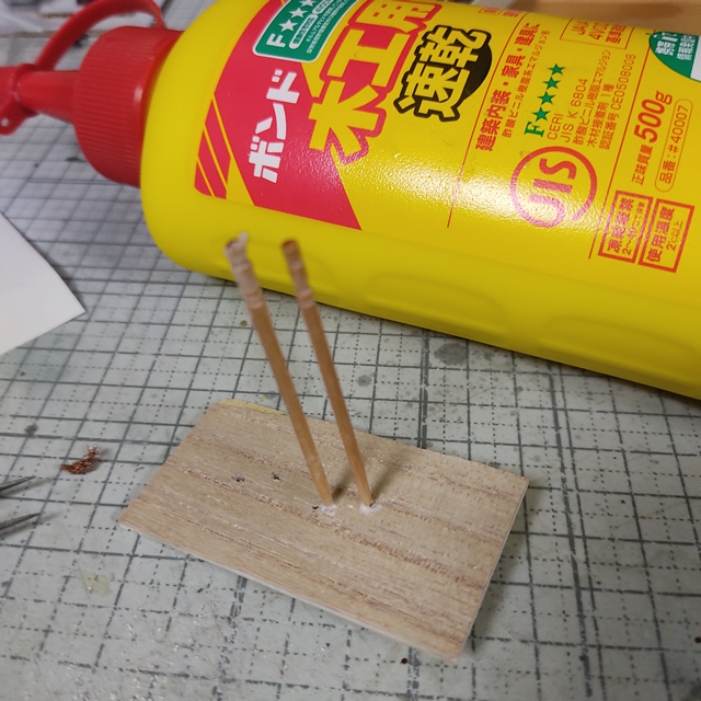 ボンドが固まったら裏面の余分な爪楊枝を切り取って簡易治具の出来上がり。
