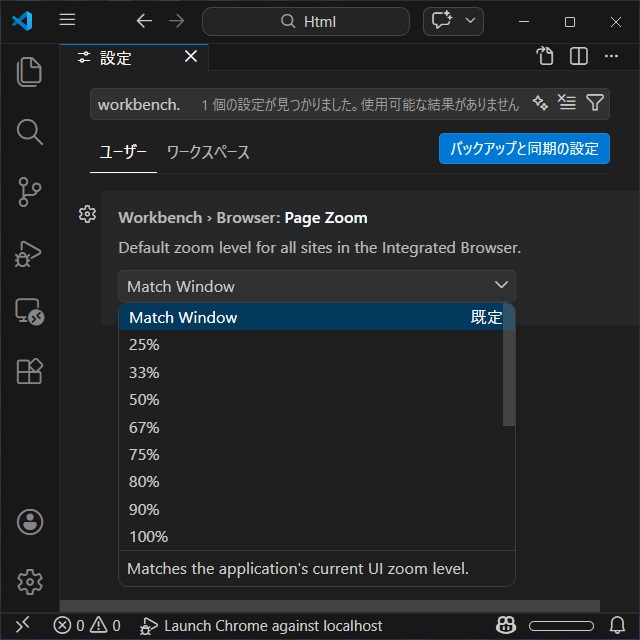 また、倍率の既定値が変更できる[workbench.browser.pageZoom]設定が追加されています。