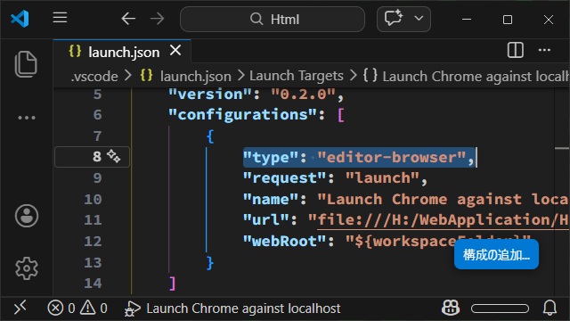 先回までの更新で追加された統合ブラウザー(VSCode内でタブで表示されるブラウザー)でHTMLを表示してデバッグが可能になりました。