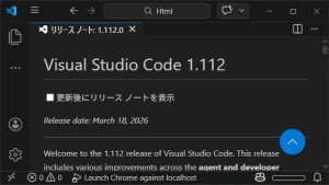 2026年3月にリリースされた「Visual Studio Code」の新しいバージョン1.112に追加された機能で気になった部分のレビューを投稿してみます。 2025年3月にリリースされたバージョン1.111する別記事 … 続きを読む VisualStudioCode 1.112 気になった機能レビュー