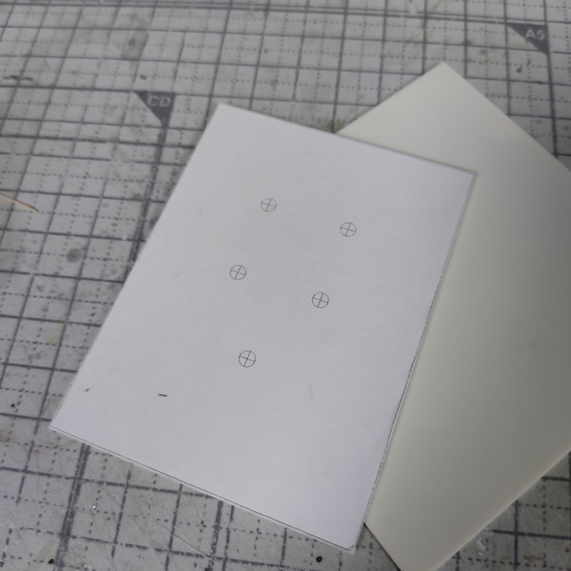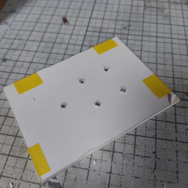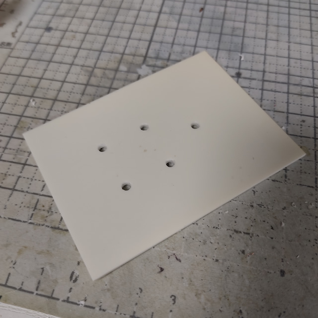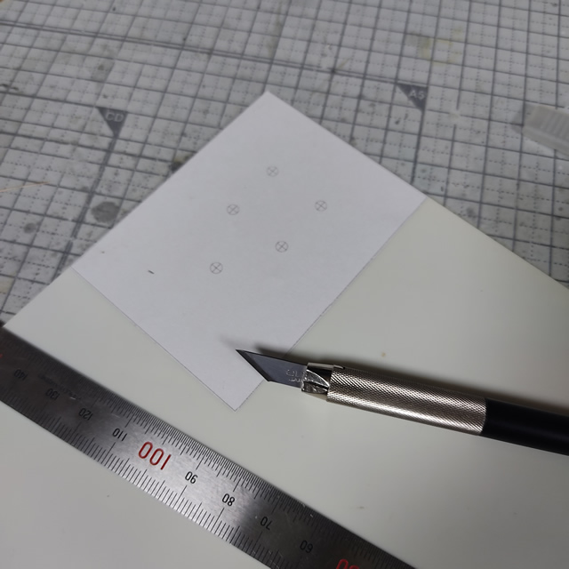 こんな感じでガイドに沿ってプラ板をカットして別パーツの位置決め用の穴も準備ができました。