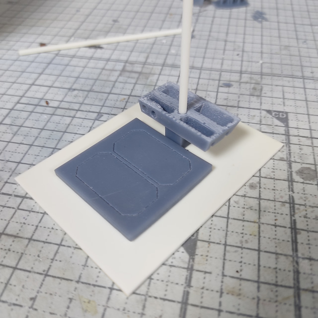 平面で構成されたパーツは、3Dプリンターよりもプラ板を貼り合わせて造形した方が早そうなので、工作を始めていきます。