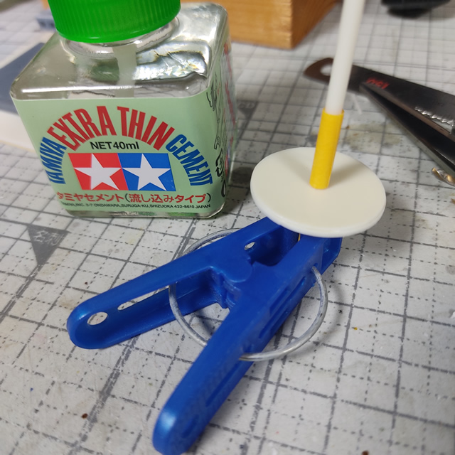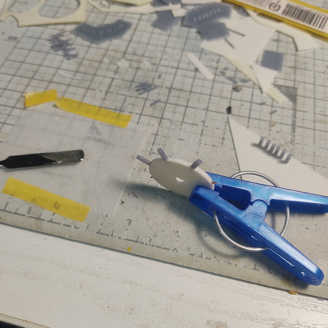 プラ板の積層で工作した操縦桿をディティールアップしていきます。