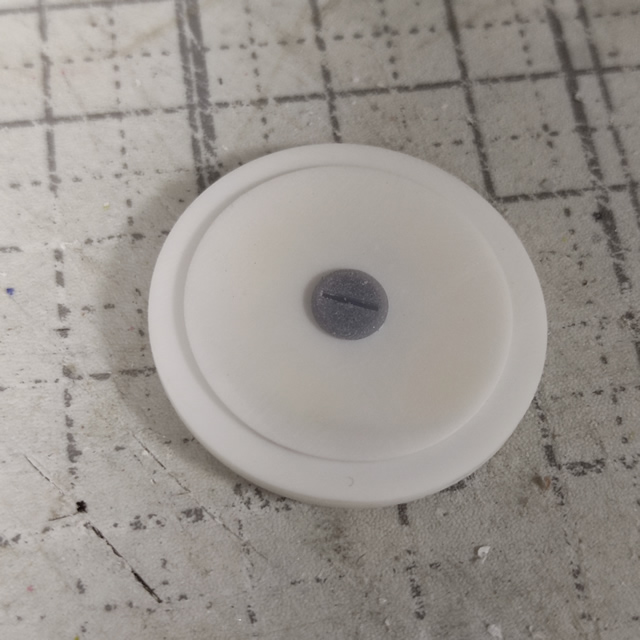 中心部分のマイナスモールドを施したパーツは、こんな感じで取り付けます。同じ図面から造形していますが、寸法などに問題ないか確認します。