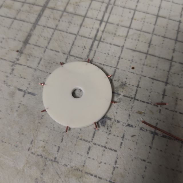 操縦桿のパーツ周囲に開けた0.5ミリの穴に銅線を接着。