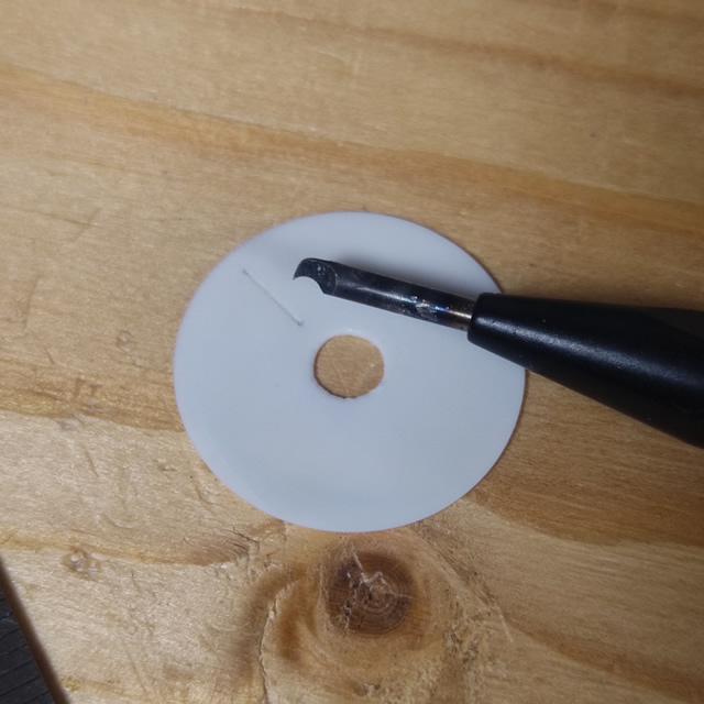 最後に、積層するプラ板にスジ彫りをしてモールドを追加します。