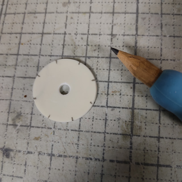 鉛筆でマーキングした部分もピンバイスで穴開け。