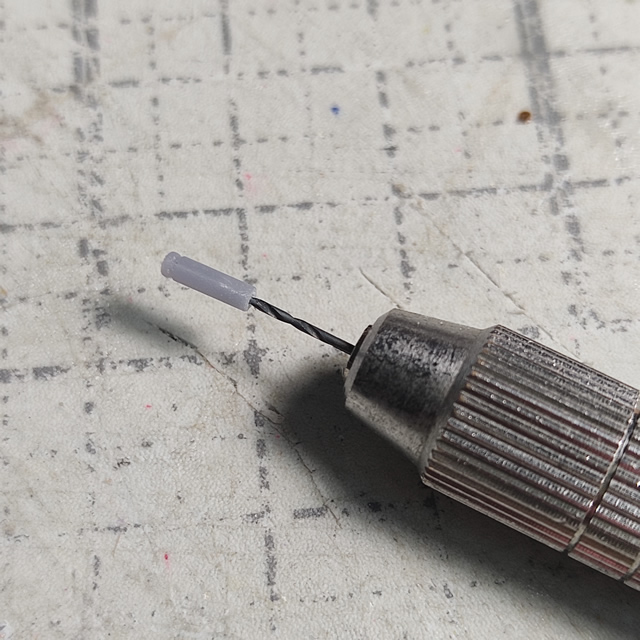 操縦桿に固定する側に0.5ミリのドリル刃で穴を開けます。