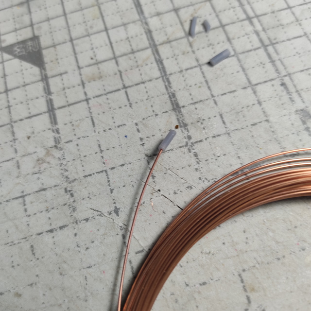 再造形したパーツを銅線と接着していきます。(固定には2液式のエポキシ接着剤を使いました)