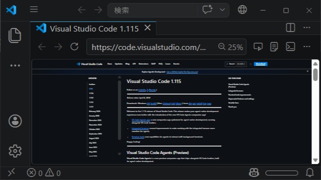 2026年4月にリリースされた「Visual Studio Code」の新しいバージョン1.115に追加された機能で気になった部分のレビューを投稿してみます。