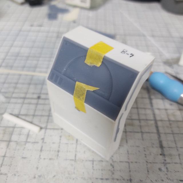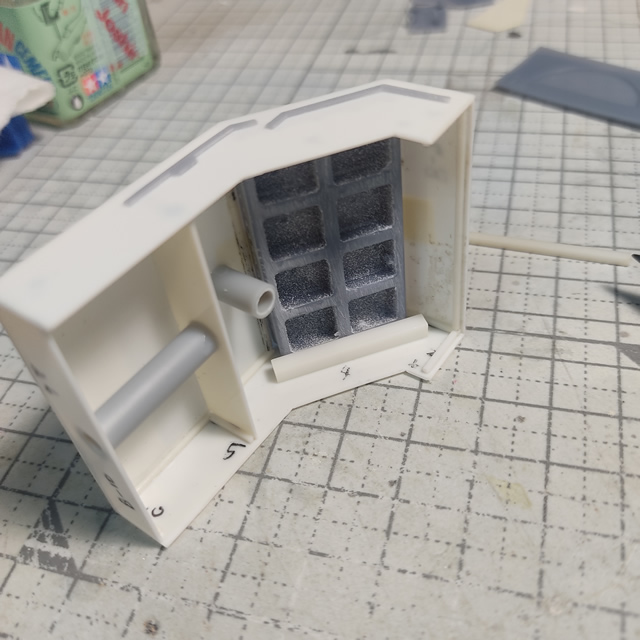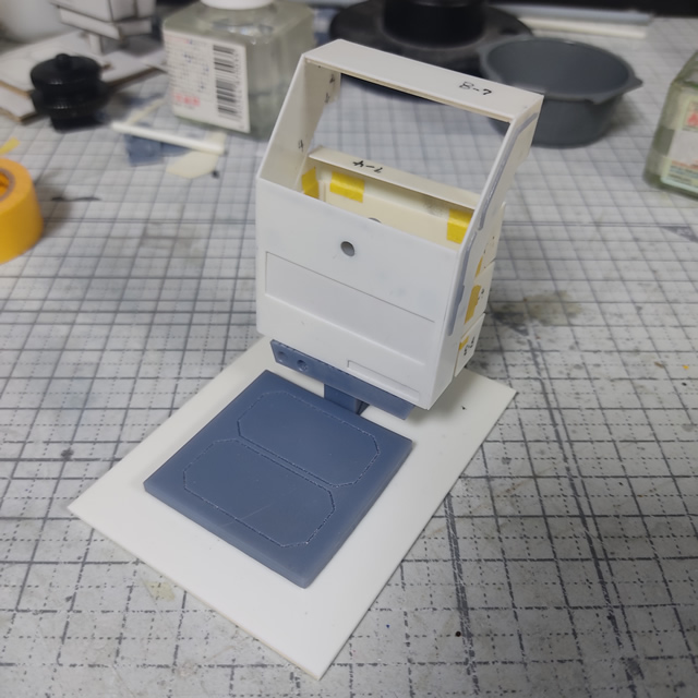 今回は、プラ板で箱組みしたパーツに計器パネルの造形と組付けを行いました。