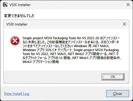 Visual Studioの[Single-project MSIX Packaging Tools]のインストール時にエラーメッセージ “この拡張機能は、すべての適用可能な製品に既にインストールされています” が表示された場合の対処法について備忘録的に投稿します。